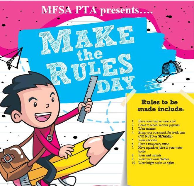 During this day the children are allowed to bend the rules stated. (All other school rules apply)