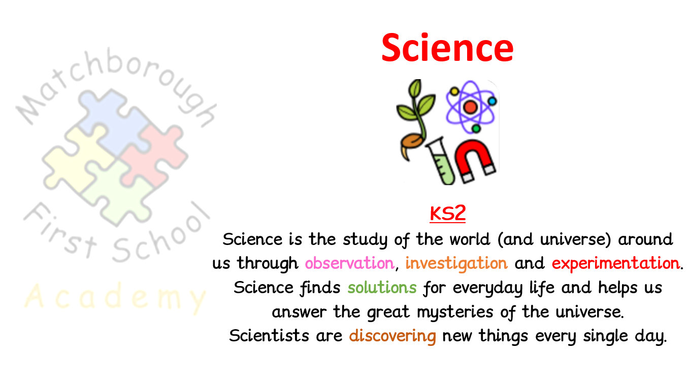 At Matchborough First School Academy our vision is to give children access to a practical and enjoyable science curriculum which enables them to explore and discover the world around them so that they have a deeper understanding of the world we live in.